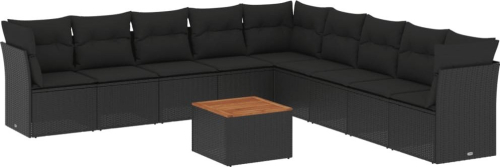vidaXL 10-cz. zestaw wypoczynkowy do ogrodu, poduszki czarny rattan PE