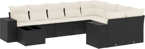 vidaXL 10-cz. zestaw wypoczynkowy do ogrodu, poduszki czarny rattan PE