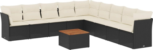 vidaXL 10-cz. zestaw wypoczynkowy do ogrodu, poduszki czarny rattan PE