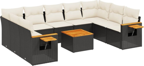 vidaXL 10-cz. zestaw wypoczynkowy do ogrodu, poduszki czarny rattan PE