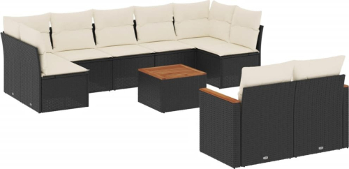 vidaXL 10-cz. zestaw wypoczynkowy do ogrodu, poduszki czarny rattan PE