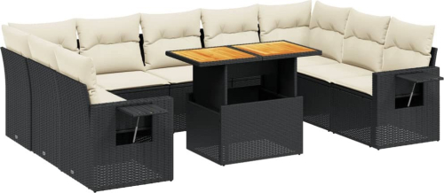 vidaXL 10-cz. zestaw wypoczynkowy do ogrodu, poduszki czarny rattan PE