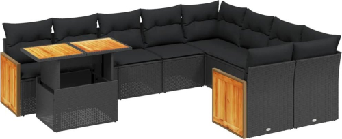 vidaXL 10-cz. zestaw wypoczynkowy do ogrodu, poduszki czarny rattan PE