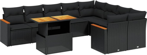 vidaXL 10-cz. zestaw wypoczynkowy do ogrodu, poduszki czarny rattan PE
