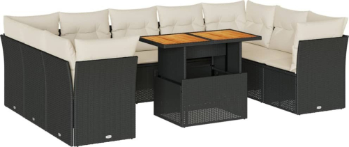 vidaXL 10-cz. zestaw wypoczynkowy do ogrodu, z poduszkami, czarny