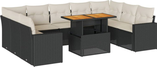 vidaXL 10-cz. zestaw wypoczynkowy do ogrodu, z poduszkami, czarny