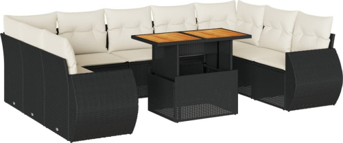 vidaXL 10-cz. zestaw wypoczynkowy do ogrodu, z poduszkami, czarny