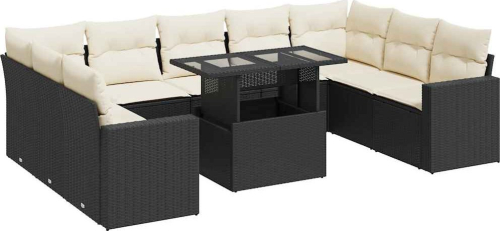 vidaXL 10-cz. zestaw wypoczynkowy do ogrodu, z poduszkami, czarny