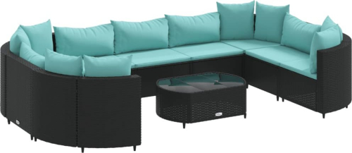 vidaXL 10-cz. zestaw wypoczynkowy do ogrodu, z poduszkami, czarny