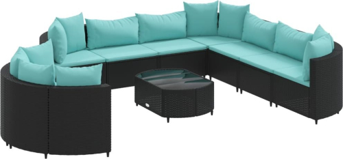 vidaXL 10-cz. zestaw wypoczynkowy do ogrodu, z poduszkami, czarny