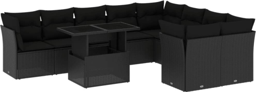 vidaXL 10-cz. zestaw wypoczynkowy do ogrodu, z poduszkami, czarny