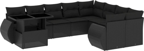 vidaXL 10-cz. zestaw wypoczynkowy do ogrodu, z poduszkami, czarny