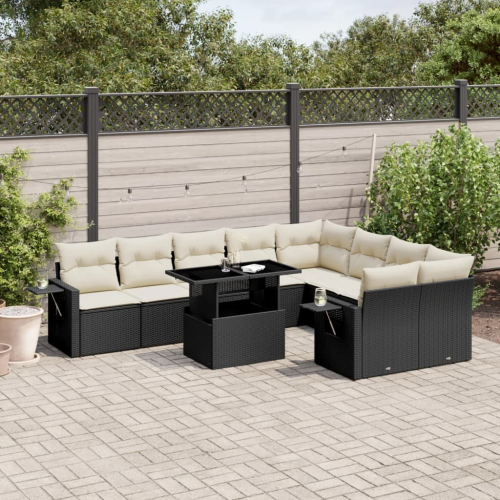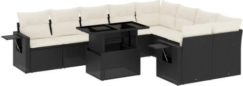 vidaXL 10-cz. zestaw wypoczynkowy do ogrodu, z poduszkami, czarny