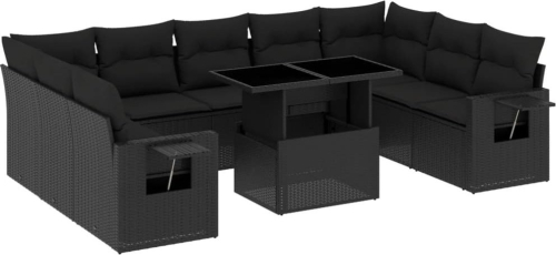 vidaXL 10-cz. zestaw wypoczynkowy do ogrodu, z poduszkami, czarny