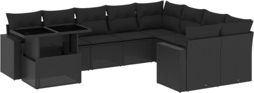 vidaXL 10-cz. zestaw wypoczynkowy do ogrodu, z poduszkami, czarny