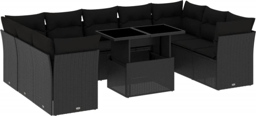 vidaXL 10-cz. zestaw wypoczynkowy do ogrodu, z poduszkami, czarny