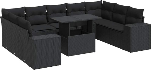 vidaXL 10-cz. zestaw wypoczynkowy do ogrodu, z poduszkami, czarny