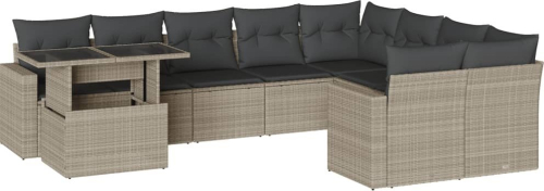 vidaXL 10-cz. zestaw wypoczynkowy do ogrodu, z poduszkami, jasnoszary