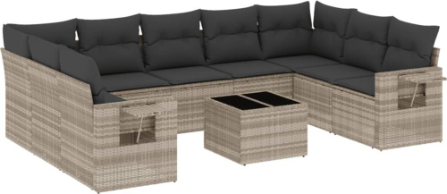 vidaXL 10-cz. zestaw wypoczynkowy do ogrodu, z poduszkami, jasnoszary