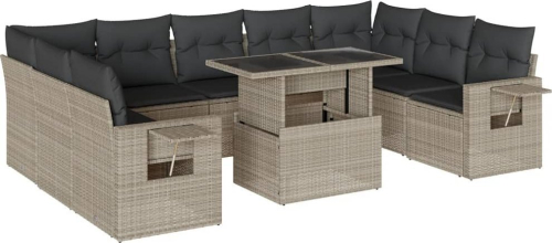 vidaXL 10-cz. zestaw wypoczynkowy do ogrodu, z poduszkami, jasnoszary