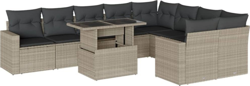 vidaXL 10-cz. zestaw wypoczynkowy do ogrodu, z poduszkami, jasnoszary