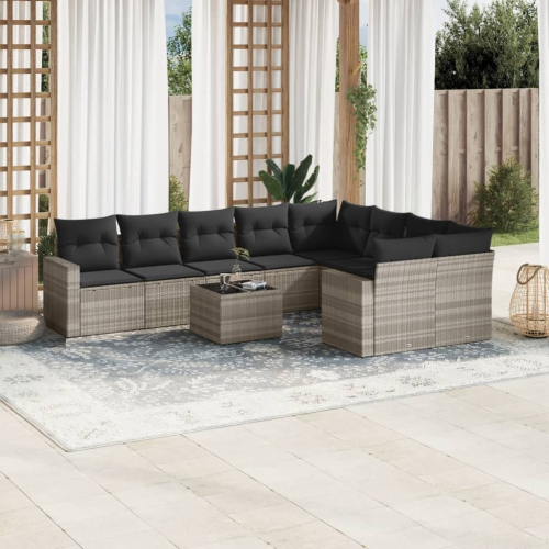 vidaXL 10-cz. zestaw wypoczynkowy do ogrodu, z poduszkami, jasnoszary