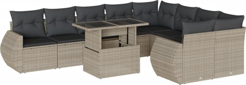 vidaXL 10-cz. zestaw wypoczynkowy do ogrodu, z poduszkami, jasnoszary