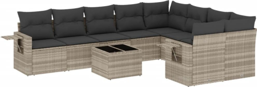 vidaXL 10-cz. zestaw wypoczynkowy do ogrodu, z poduszkami, jasnoszary