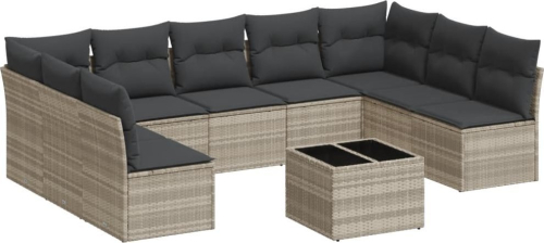 vidaXL 10-cz. zestaw wypoczynkowy do ogrodu, z poduszkami, jasnoszary