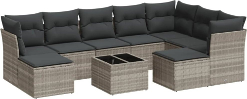 vidaXL 10-cz. zestaw wypoczynkowy do ogrodu, z poduszkami, jasnoszary