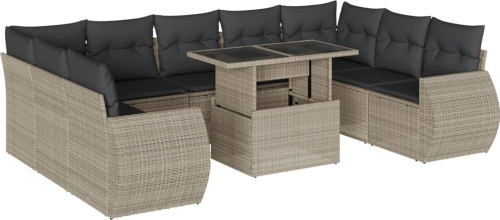 vidaXL 10-cz. zestaw wypoczynkowy do ogrodu, z poduszkami, jasnoszary
