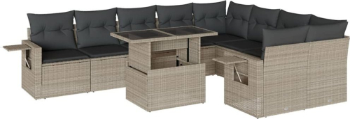 vidaXL 10-cz. zestaw wypoczynkowy do ogrodu, z poduszkami, jasnoszary