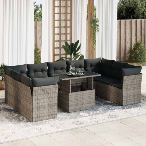 vidaXL 10-cz. zestaw wypoczynkowy do ogrodu, z poduszkami, szary