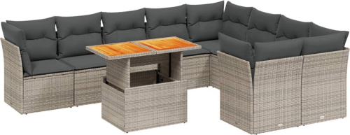 vidaXL 10-cz. zestaw wypoczynkowy do ogrodu, z poduszkami, szary