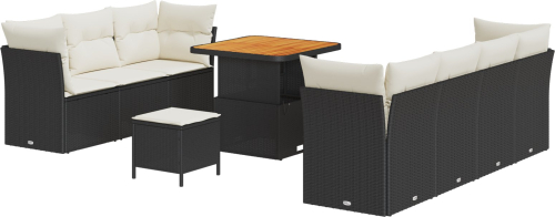 vidaXL 10-częściowy zestaw sof ogrodowych z poduszkami Czarny Polirattan Akacja