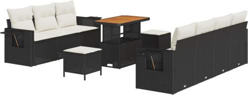 vidaXL 10-częściowy zestaw sof ogrodowych z poduszkami czarny polirattan akacja