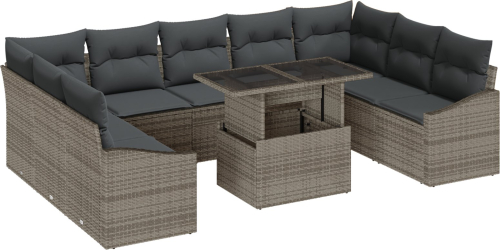 vidaXL 10-częściowy Zestaw Sof Ogrodowych z Poduszkami Szary Polirattan
