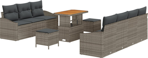 vidaXL 10-częściowy zestaw sof ogrodowych z poduszkami Szary polirattan akacja