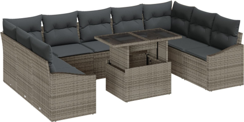 vidaXL 10-częściowy zestaw sof ogrodowych z poduszkami szary polirattanowy