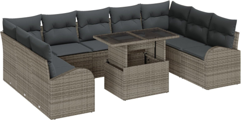 vidaXL 10-częściowy Zestaw Sof Ogrodowych z Poduszkami Szary Poly Rattan