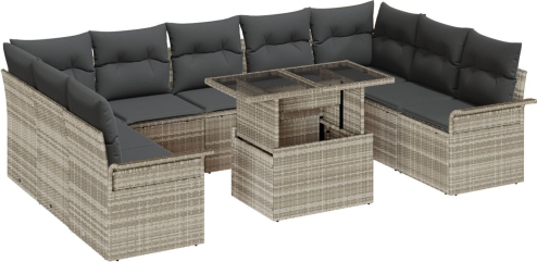 vidaXL 10-częściowy Zestaw Sof Ogrodowych z Szarymi Poduszkami Polirattan