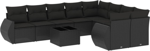 vidaXL 10-częściowy zestaw wypoczynkowy do ogrodu, poduszki czarny rattan PE
