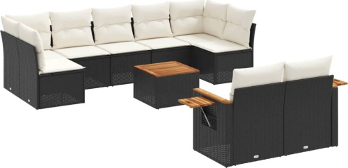 vidaXL 10-częściowy zestaw wypoczynkowy do ogrodu, poduszki czarny rattan PE