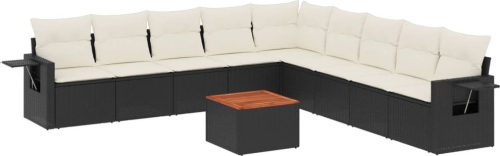 vidaXL 10-częściowy zestaw wypoczynkowy do ogrodu, poduszki czarny rattan PE
