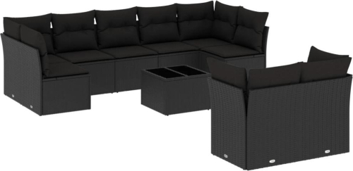 vidaXL 10-częściowy zestaw wypoczynkowy do ogrodu, poduszki czarny rattan PE