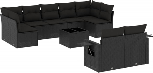 vidaXL 10-częściowy zestaw wypoczynkowy do ogrodu, poduszki czarny rattan PE