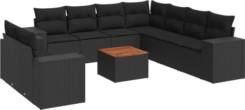 vidaXL 10-częściowy zestaw wypoczynkowy do ogrodu, poduszki czarny rattan PE