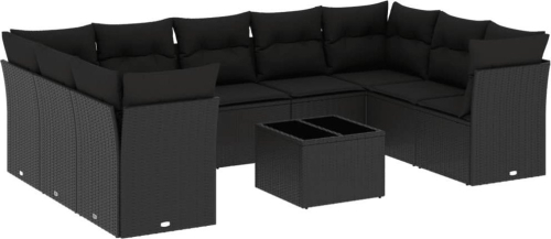 vidaXL 10-częściowy zestaw wypoczynkowy do ogrodu, poduszki czarny rattan PE