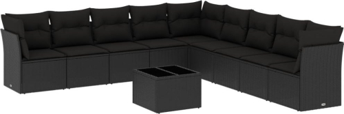 vidaXL 10-częściowy zestaw wypoczynkowy do ogrodu, poduszki czarny rattan PE