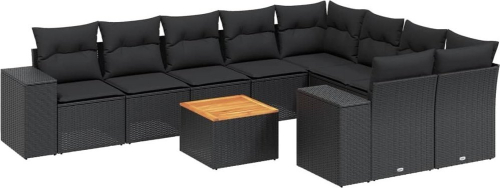 vidaXL 10-częsciowy zestaw wypoczynkowy do ogrodu, poduszki czarny rattan PE